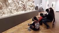 Nos sentaremos en el área parquizada alrededor del Museo y dibujaremos mientras escuchamos la música en nuestros celulares con auriculares,